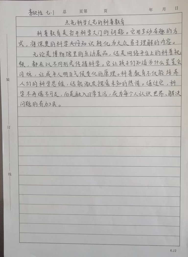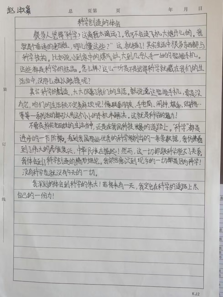 接着利用班会时间播放科普教育电影,让学生通过视频更直观的了解科技的魅力,并写下自己的感悟。